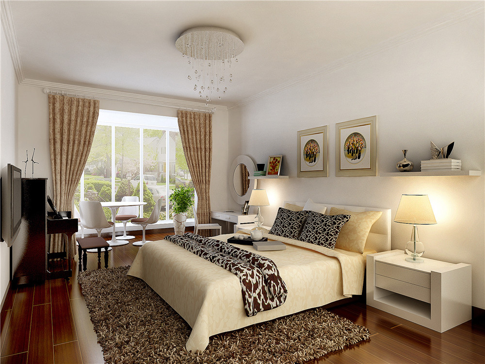 业主是一对白领,主要以父母居住之多,设计需求:要求体现田园简约元素,时尚,典雅, 色调要求温馨,父母会过来一起住主卧简约为主