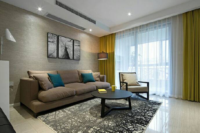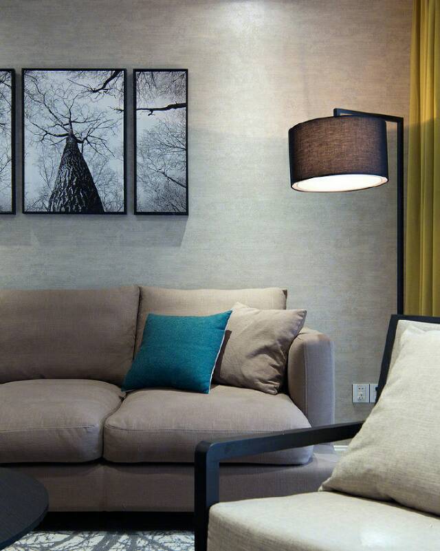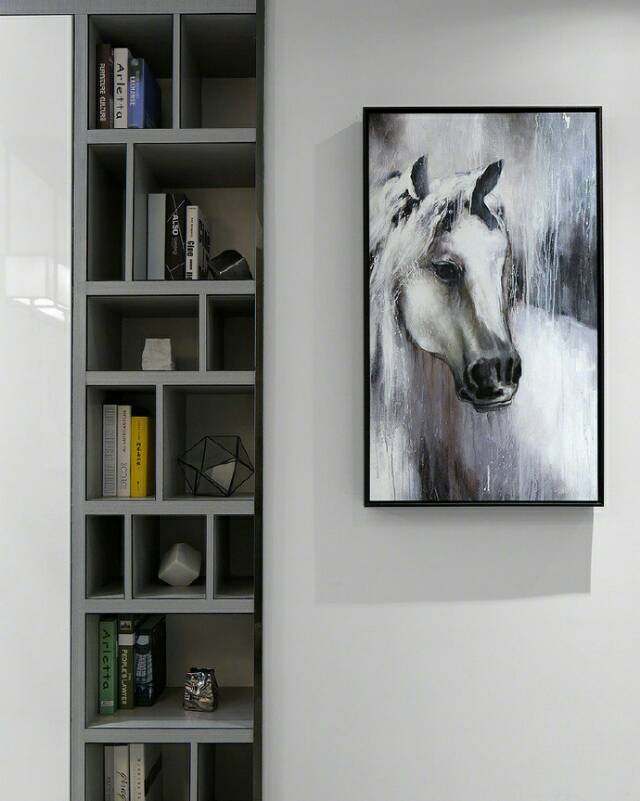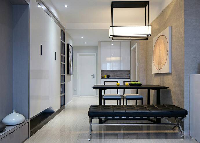 整体硬装采用的是灰白黑的基调,后期的软装搭配大胆的跳出常规的色彩搭配准则,给人鲜活不一样的现代简约风。 极致简约到有味~ 这样的家 小编很喜欢~