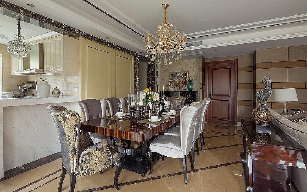 因女主人仅表示厨房空间须以实用为导向,而其它部分以男主人的喜好订定之,本案例的屋主协调出夫妻俩的共同喜好,打造出男女主人都满意的新古典空间。