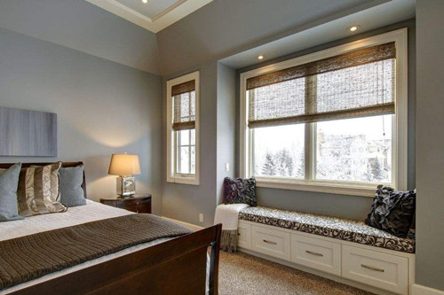 飘窗,一般是呈矩形或者梯形,三面都会有玻璃,大块的采光玻璃,使人们有更加广阔的视野,更赋予生活以浪漫温馨的色彩。飘窗是从室内向室外凸起,窗台的高度会比一般的窗户较低,这样设计既有利于进行大面积的玻璃采光,又保留了宽敞的窗台,使得室内空间在视觉上得以延伸。
