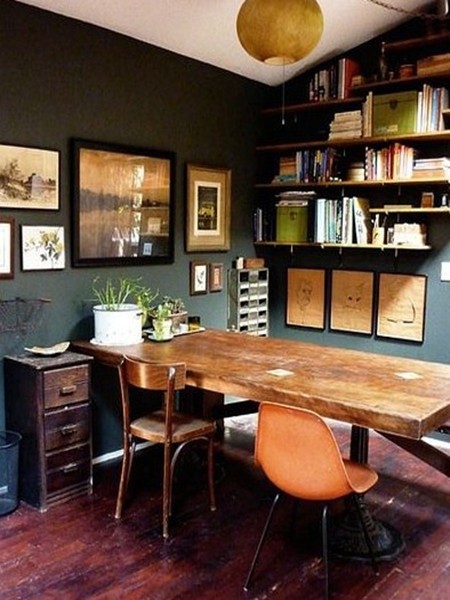 深色的墙面,木质的家具,还有艺术感十足的装饰画,流露出满满的古朴韵味。不规则的阁楼空间,一下子有了浓郁的书卷气。