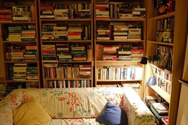 对爱读书的人来说,被书包围是一件无比幸福的事情。其实,在你的家里就可以实现这个愿望。靠在书架边的沙发,两面被密密麻麻的书本包围,台灯照亮一个小小角落,是不是有种电影场景的感觉?