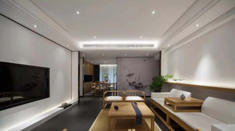 适合大多数家庭使用,但装修时也要留点小心机。比如,层高有限的情况,可以在吊顶处留缝,嵌入黑镜或黑线,这样不仅更加简洁美观,还具有把空间推远的视觉效果。
