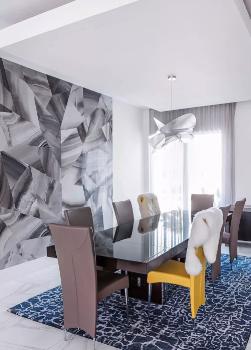 悬吊式吊顶主要是灯饰装饰的作用。如果没有了吊顶的装饰,留下赤裸裸的吊灯会显得不和谐,这时悬吊吊顶搭配一个恰当的灯具会好很多。同时悬吊吊顶也会演化出很多异形吊顶,这样的设计使空间更有层次感,但预算也会偏高。