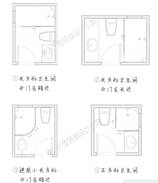基本布置法是从卫生间门口逐渐深入,洗手台、马桶、淋浴间在最里面,这样无论是使用还是视觉上都是最科学的。