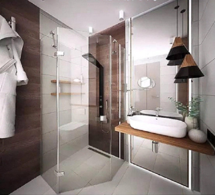 玻璃淋浴房的采光好、性价比也高,可按形状分为一字型、L型和转角型,对于小户型来说,转角型更加节省空间。