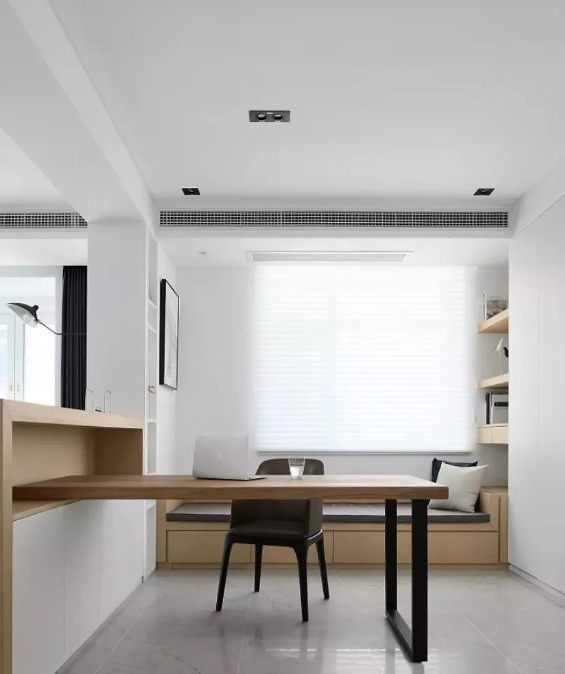 打通原有的隔墙,三房变两房,使得整个大环境融为一体。 宽敞明亮、书房后的休闲空间在眼睛疲劳时可以小憩一会儿了。