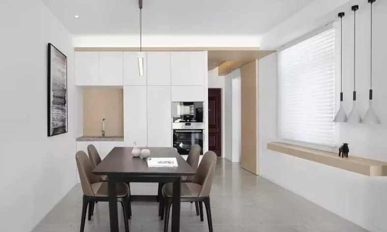 餐厅边没有做传统的酒柜形式、内嵌式的冰箱、烤箱与水吧台,洗洗水果洗洗手。